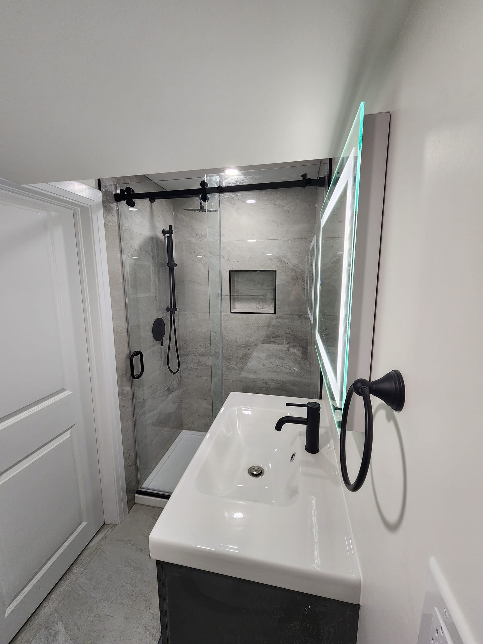 A washroom renovation involves updating and upgrading your existing bathroom to improve its functionality, aesthetic appeal, and overall value. This can include installing new fixtures, updating plumbing and electrical systems, reconfiguring the layout, and upgrading the flooring, walls, and cabinetry.